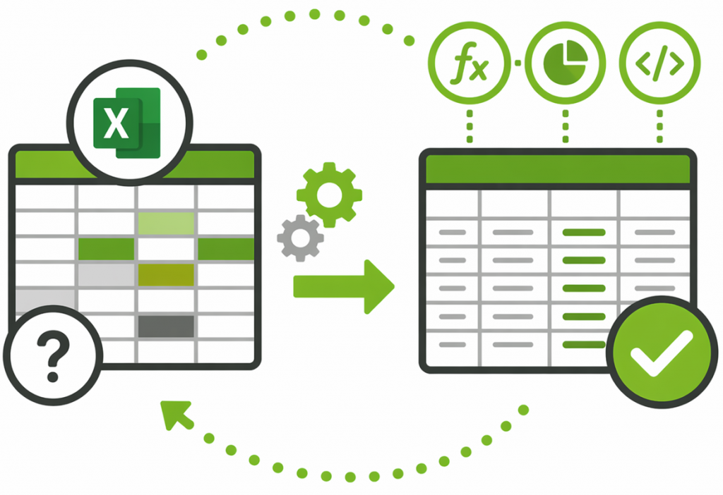 Excel ist in den meisten Unternehmen tief verankert, wird jedoch häufig nur in einem Bruchteil seiner Möglichkeiten genutzt. Gleichzeitig entstehen komplexe, fehleranfällige Dateien und manuelle Abläufe. Der Wunsch nach Verbesserung ist da – aber es fehlt ein klarer Ansatz, wie man bestehende Lösungen sinnvoll weiterentwickelt.